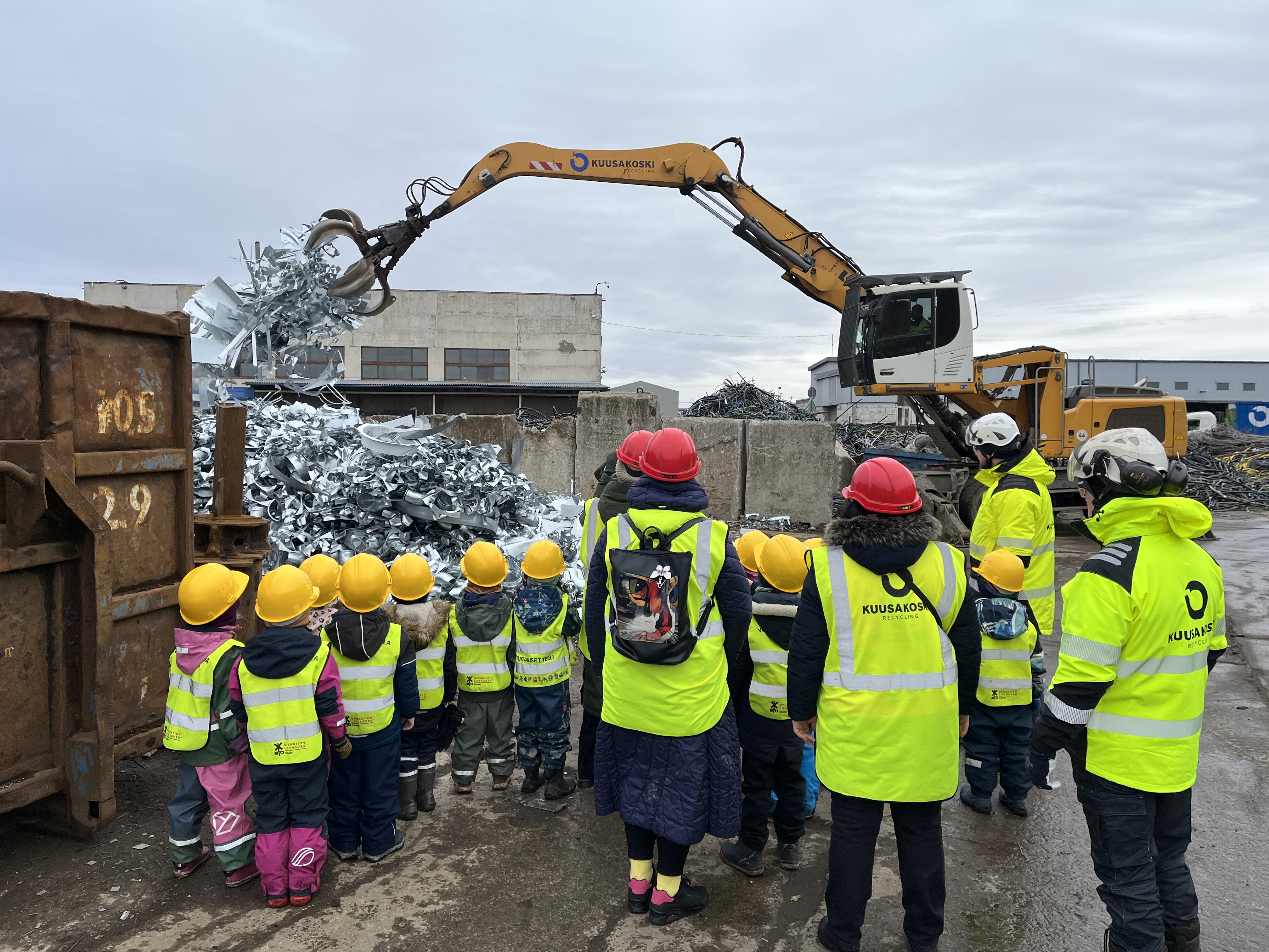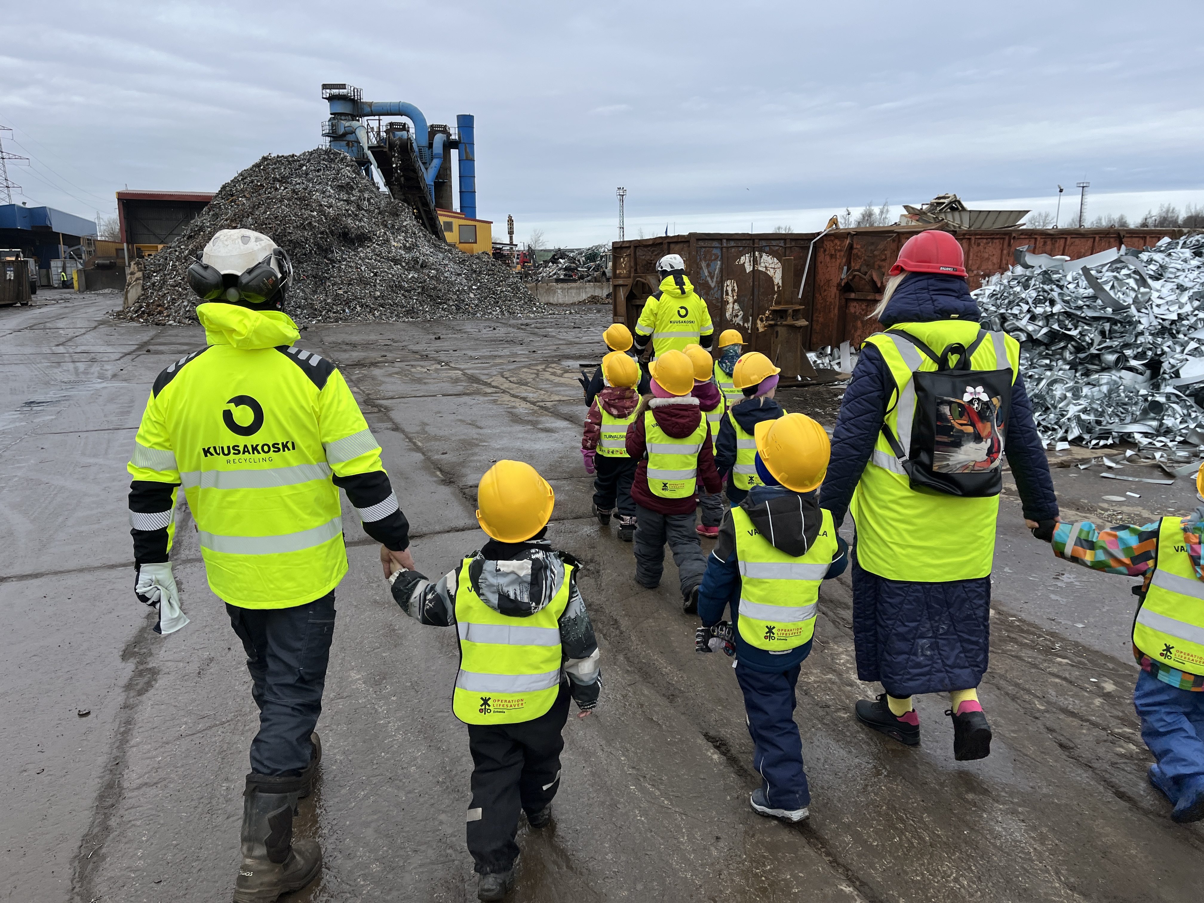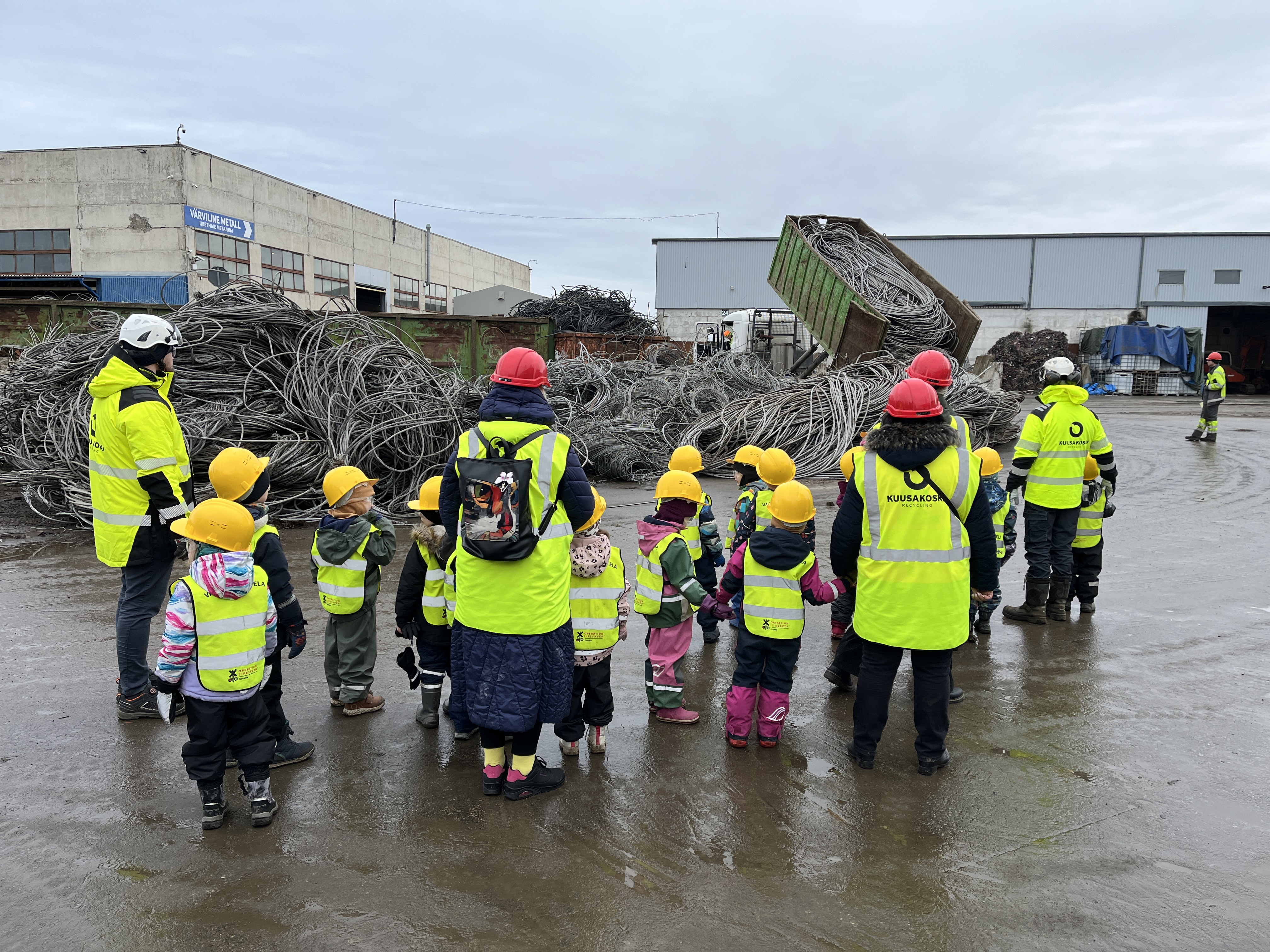 Ekskursioon Kuusakoskisse oli tõeliselt põnev! Lapsed said alustuseks endale kiivrid ja prillid. Ekskursiooni viisid läbi ostu- ja arendusjuht Villu ning tehnika- ja haldusjuht Jüri, kes tutvustasid lastele kogu territooriumi ja metalli ümbertöötlemise protsessi.Ekskursiooni alguses jäi lastele kohe silma usin töö, mida Kuusakoskis tehakse. Henri vaatas ringi ja lausus siira imetlusega: „Siin on väga tublid töömehed!“